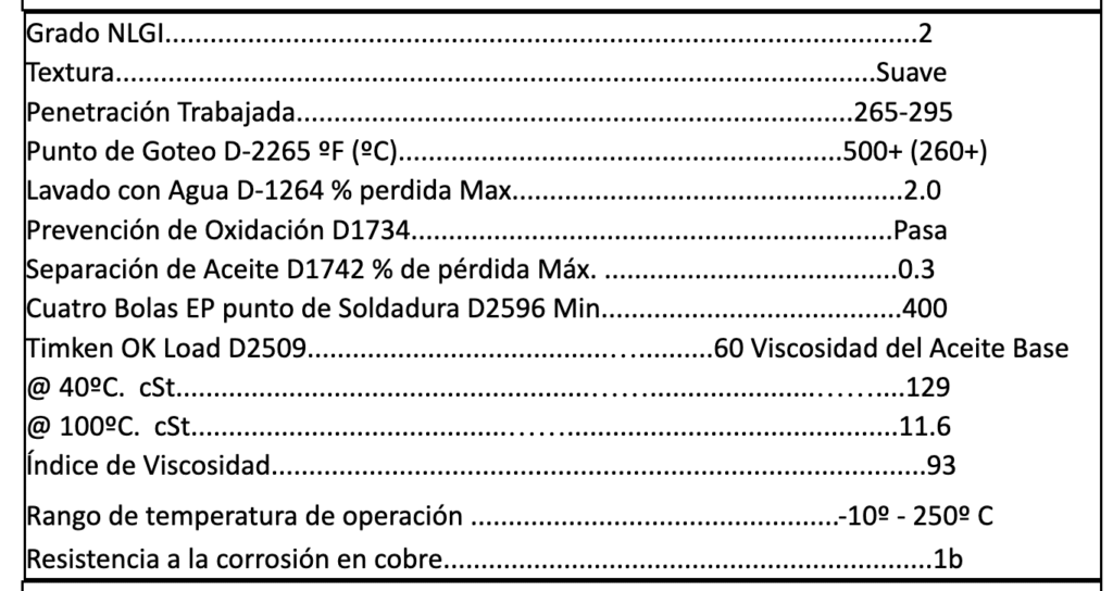 Este lubricante se compone con inhibidores de corrosión para dar máxima protección a sus equipos. Además cuenta con aditivos de extrema presión para resistir los choques, compresión y carga constante o intermitente.